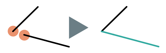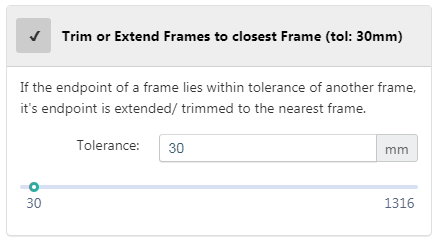 This repair method trims or extends frames which are not connected to closest frames like a fillet operation. In our example image above, both members are unconnected. The right member will be extended until it intersects with the member on the left if both lose ends are within a tolerance radius you can define yourself: